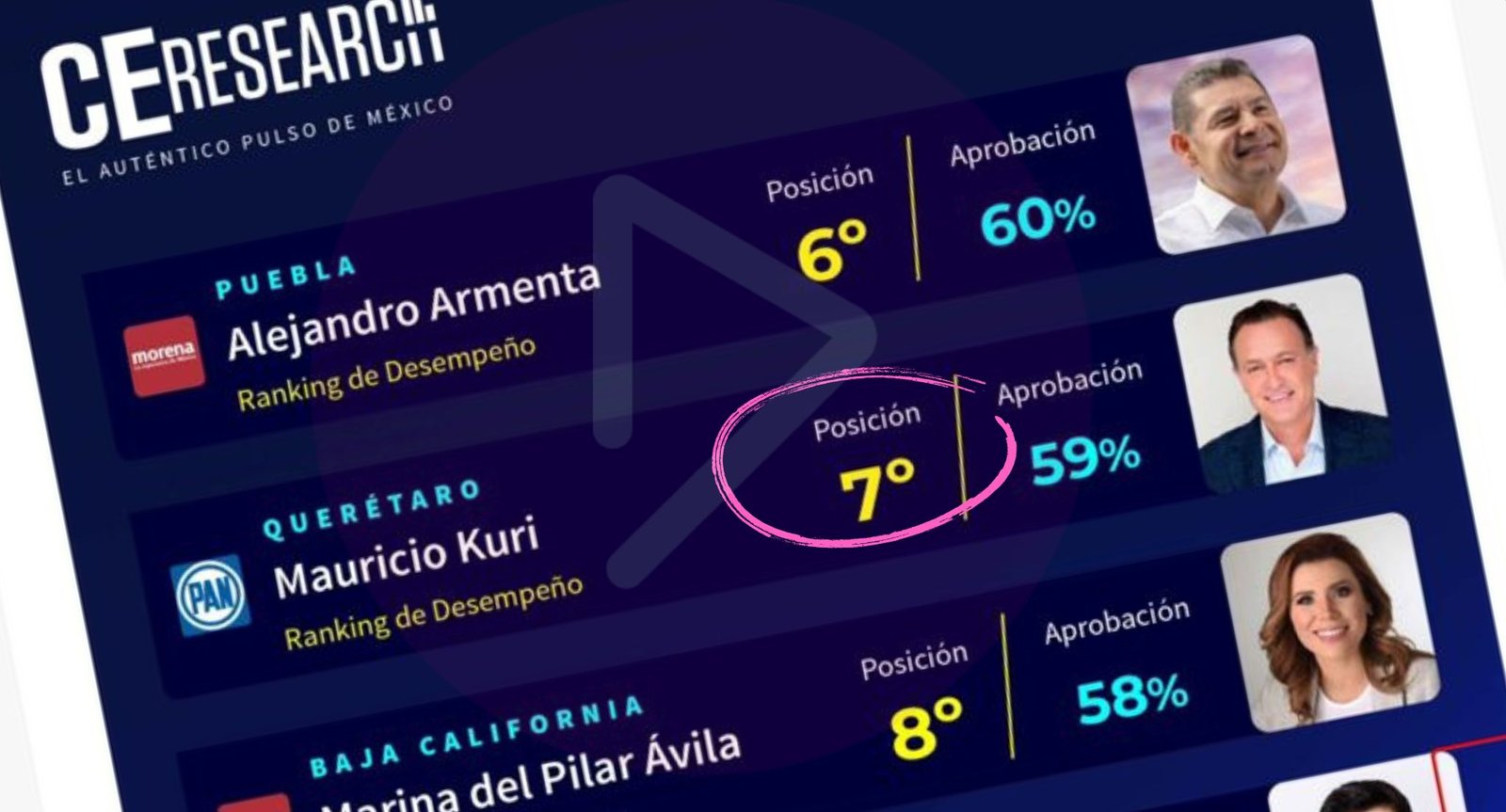 Según C&E Research el gobernador de Querétaro se posiciona en la ¡7ª posición de aceptación nacional! ¡Querétaro sigue dando de…