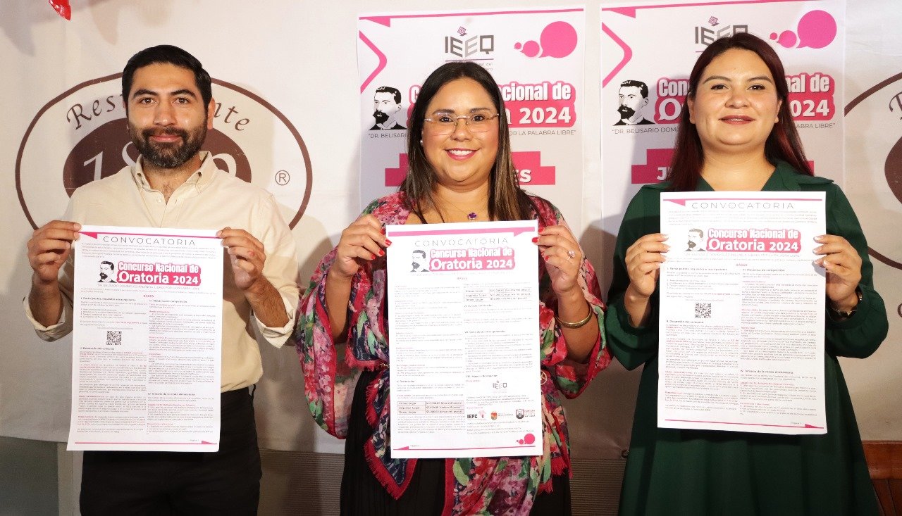 El Instituto Electoral del Estado de Querétaro (IEEQ) convocó a las juventudes de 18 a 29 años, residentes en la entidad, a participar en el Concurso Nacional de Oratoria 2024 “Dr. Belisario Domínguez Palencia. Libres por la palabra libre”.