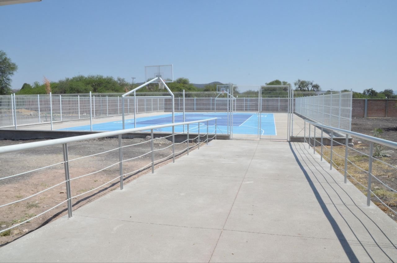 El secretario de Obras Públicas, Francisco Villegas Solis, informó sobre la construcción de la nueva cancha deportiva en esta institución, con una inversión de 2.4 millones de pesos. La obra contempló 665 metros cuadrados de superficie con recubrimiento acrílico, 61 metros cuadrados de andador, 106 metros de cercado perimetral, 28 metros de barandal, así como la instalación de porterías, tableros de básquetbol, postes y red para voleibol.