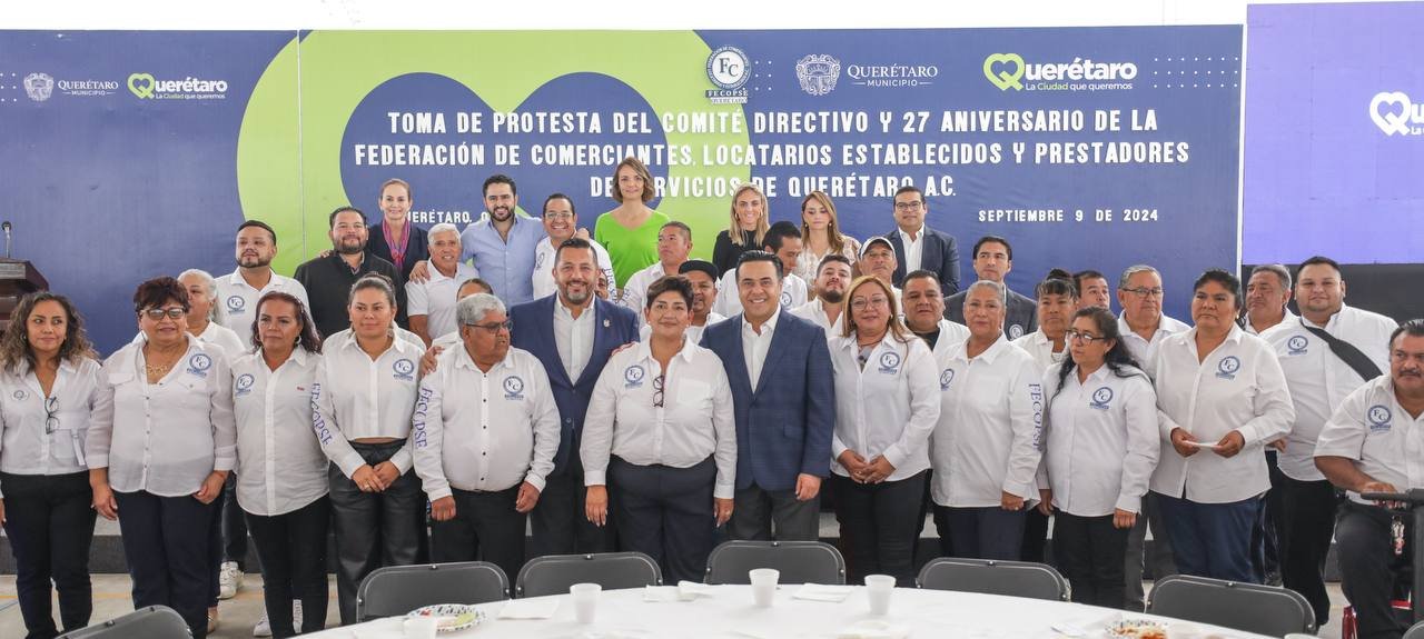 En el Marco del 27 Aniversario de la Federación de Comerciantes, Locatarios Establecidos y Prestadores de Servicios de Querétaro A.C. (FECOPSE), el Presidente Municipal de Querétaro, Luis Nava, tomó la Protesta a los integrantes del Comité Directivo para el periodo 2024-2027, a quienes llamó a mantener su compromiso para el fortalecimiento de su gremio como parte de la economía local, y para la mejora de la calidad de vida de todas las familias.